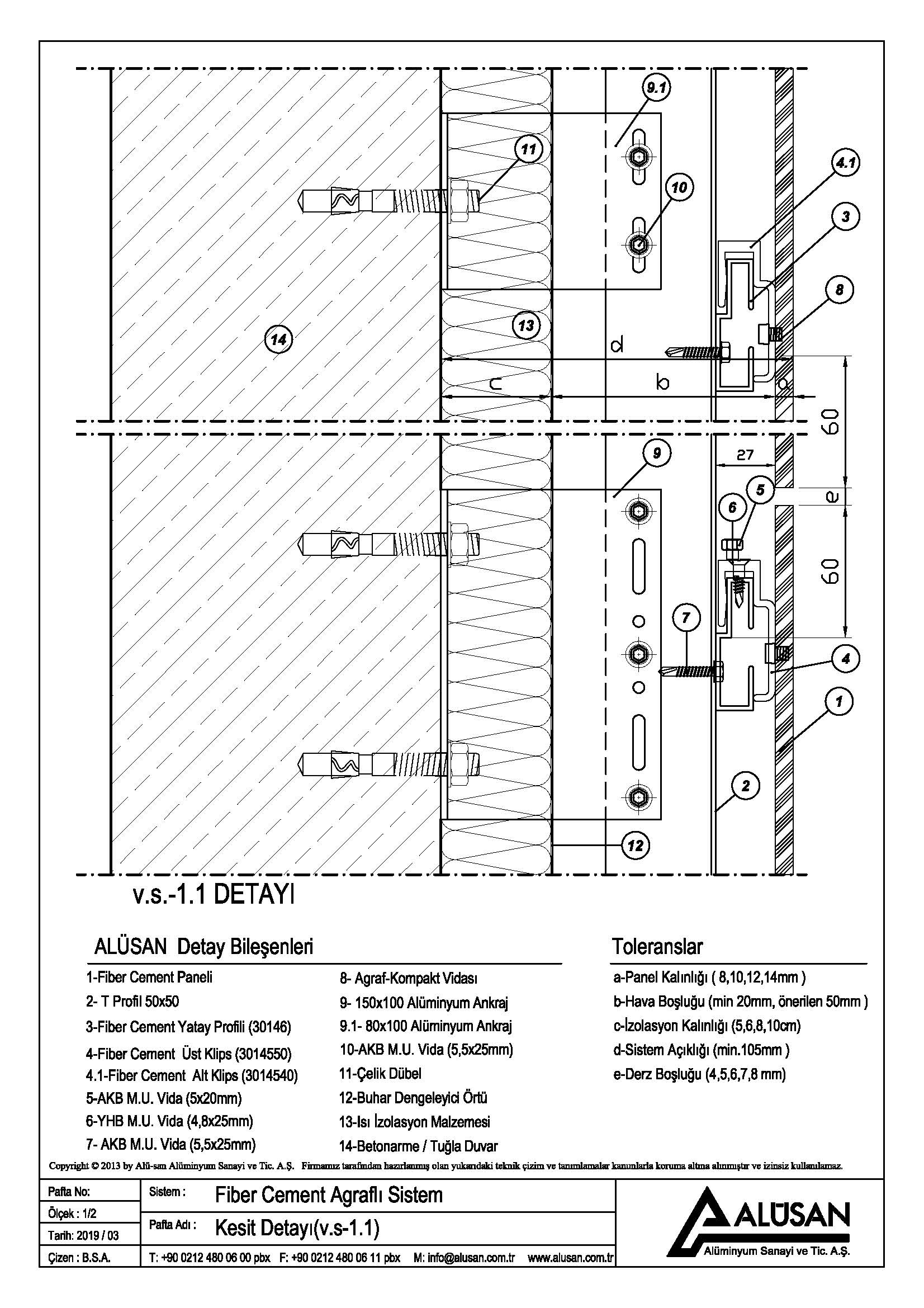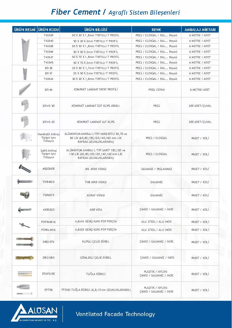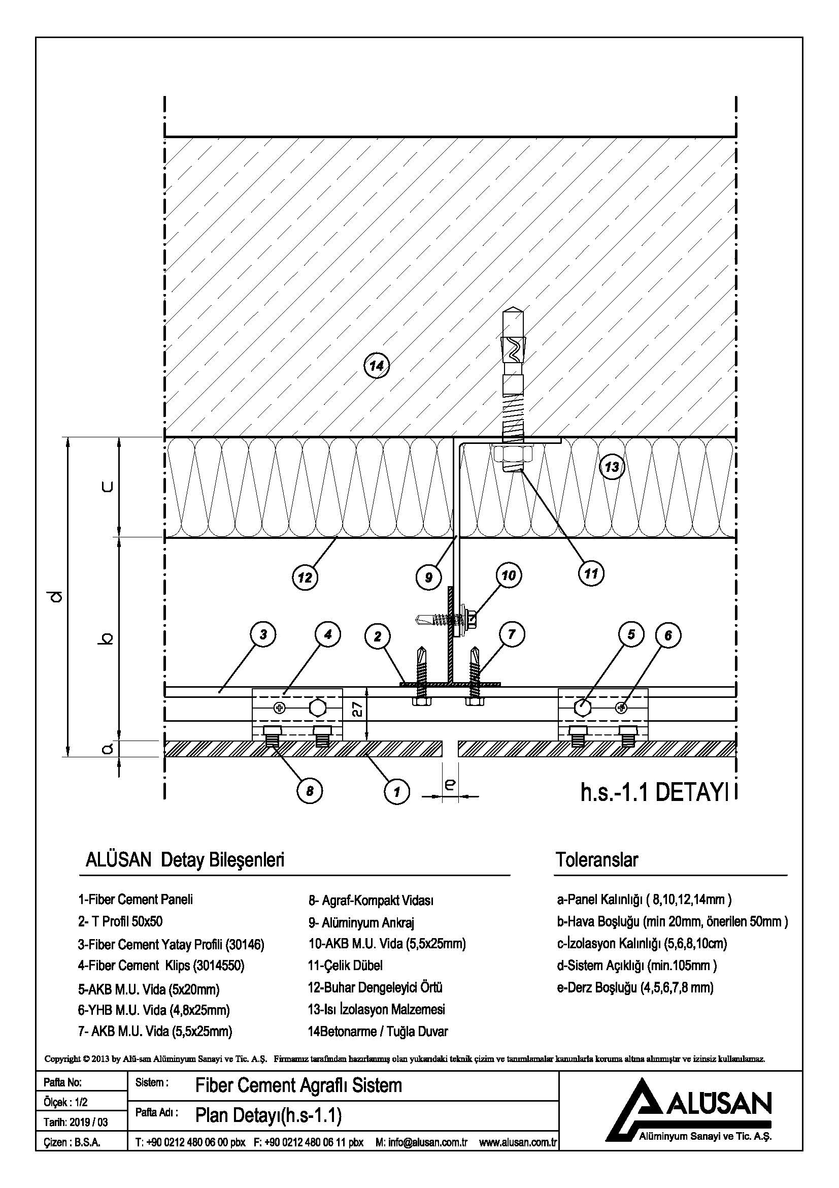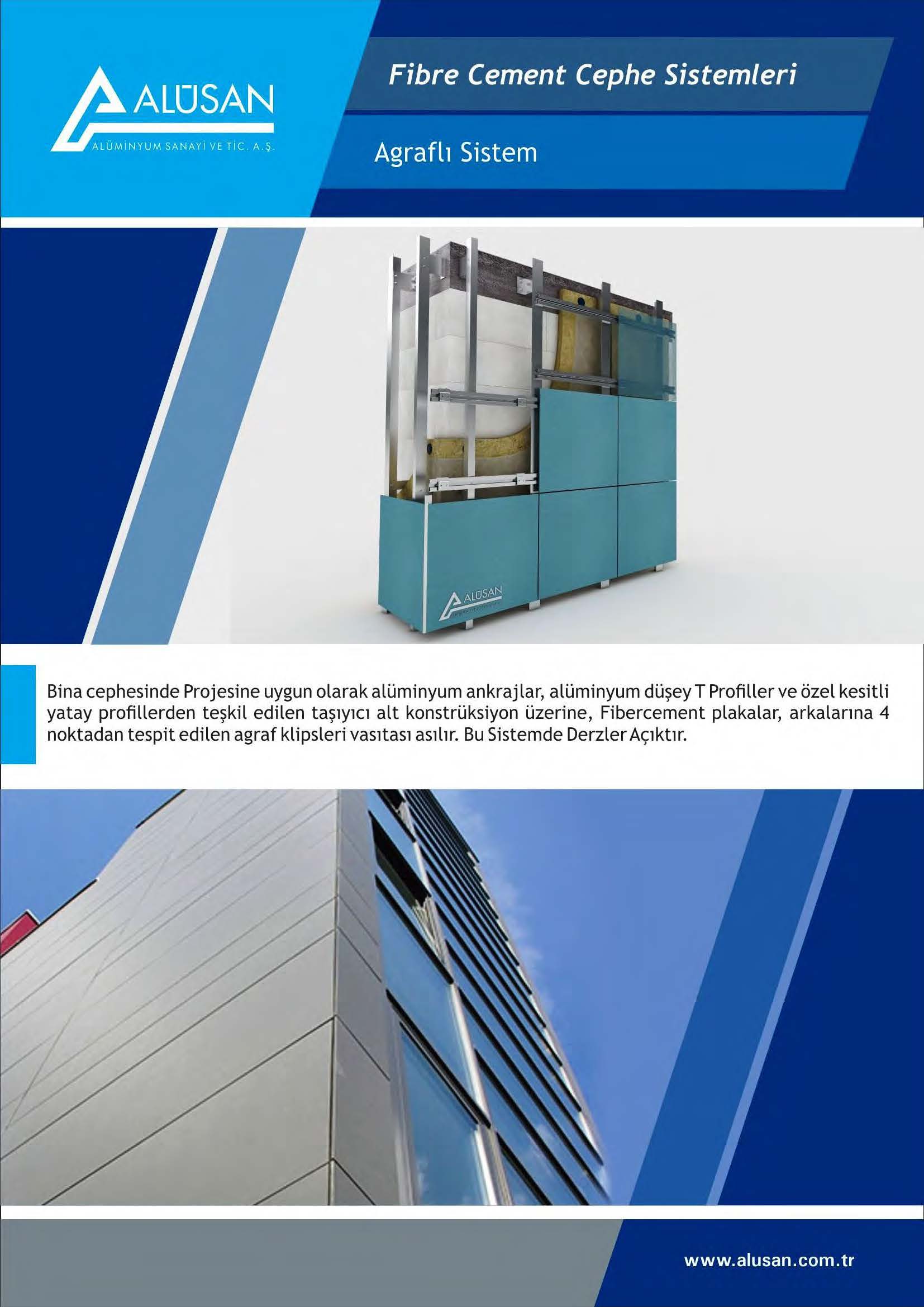 Bina cephesinde Projesine uygun olarak alüminyum ankrajlar, alüminyum düşey T Profiller ve özel kesitli yatay profillerden teşkil edilen taşıyıcı alt konstrüksiyon üzerine, Fibercement plakalar, arkalarına 4 noktadan tespit edilen agraf klipsleri vasıtası asılır. Bu Sistemde Derzler Açıktır.