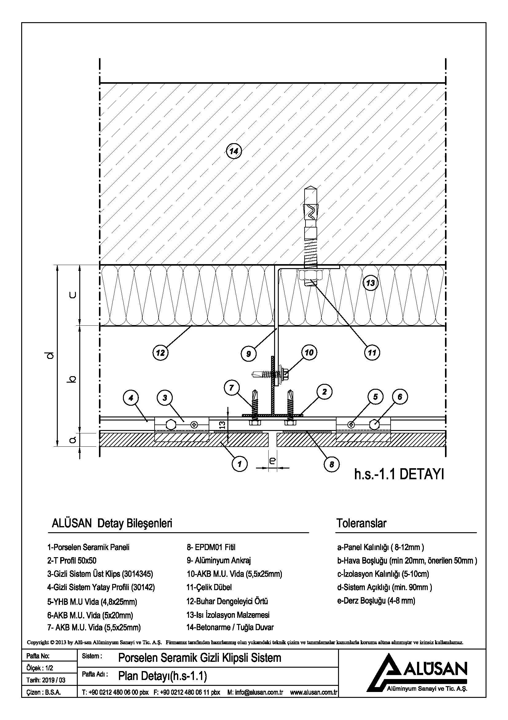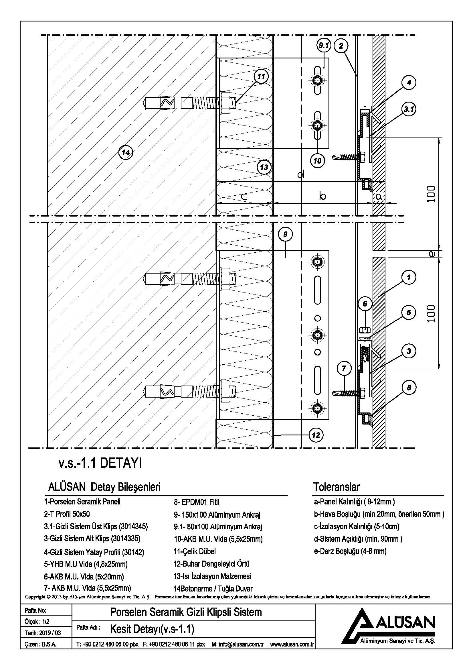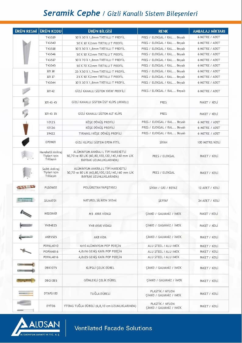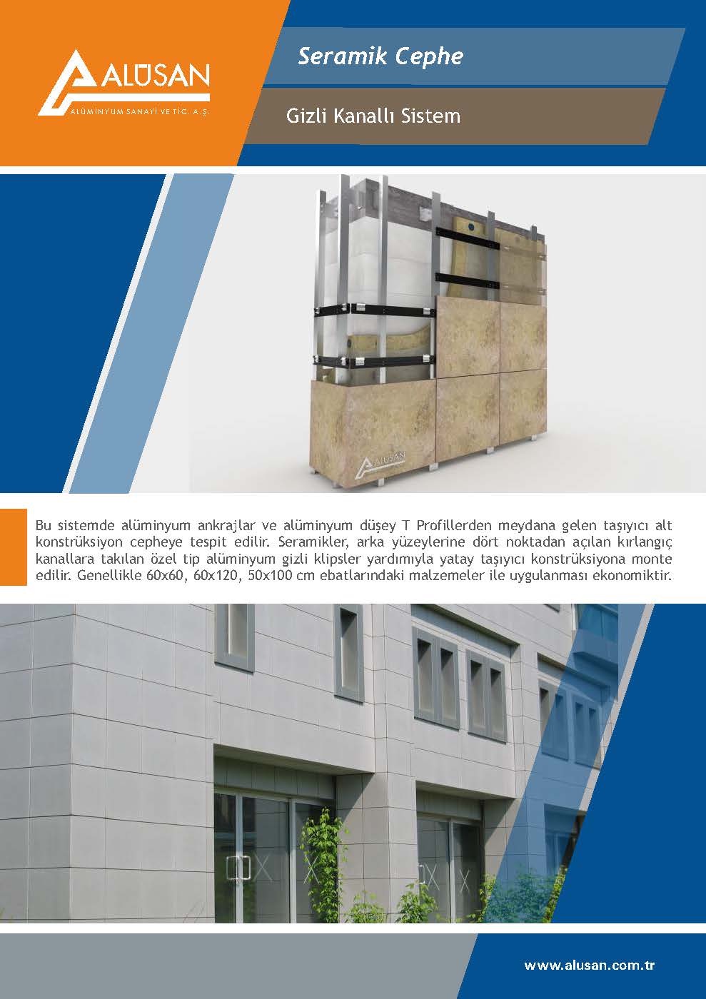 Bu sistemde alüminyum ankrajlar ve alüminyum düşey T Profillerden meydana gelen taşıyıcı alt konstrüksiyon cepheye tespit edilir. Seramikler, arka yüzeylerine dört noktadan açılan kırlangıç kanallara takılan özel tip alüminyum gizli klipsler yardımıyla yatay taşıyıcı konstrüksiyona monte edilir. Genellikle 60x60, 60x120, 50x100 cm ebatlarındaki malzemeler ile uygulanması ekonomiktir.