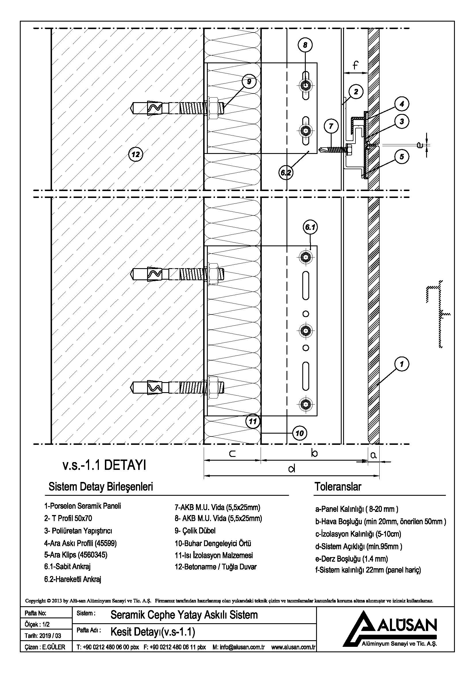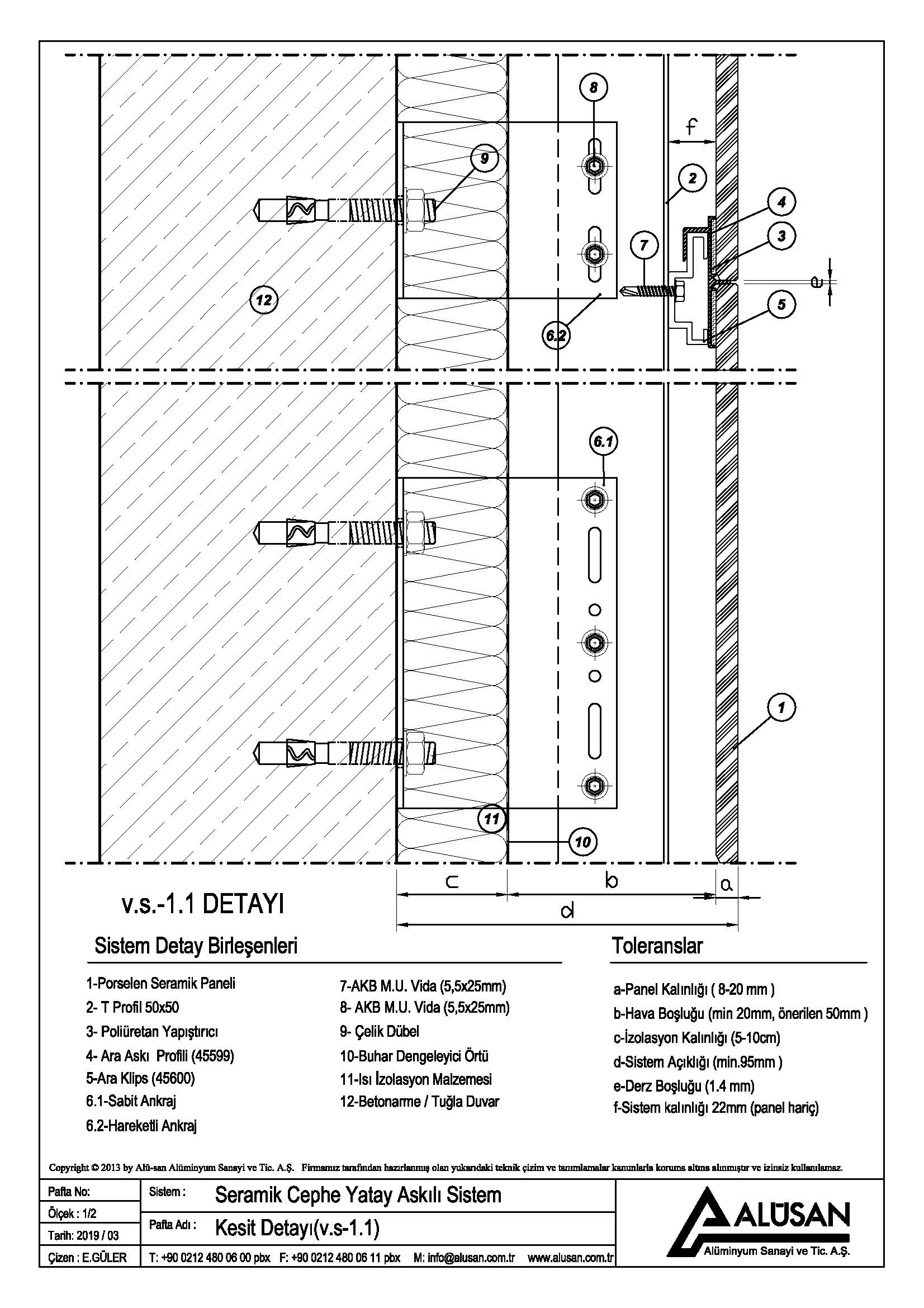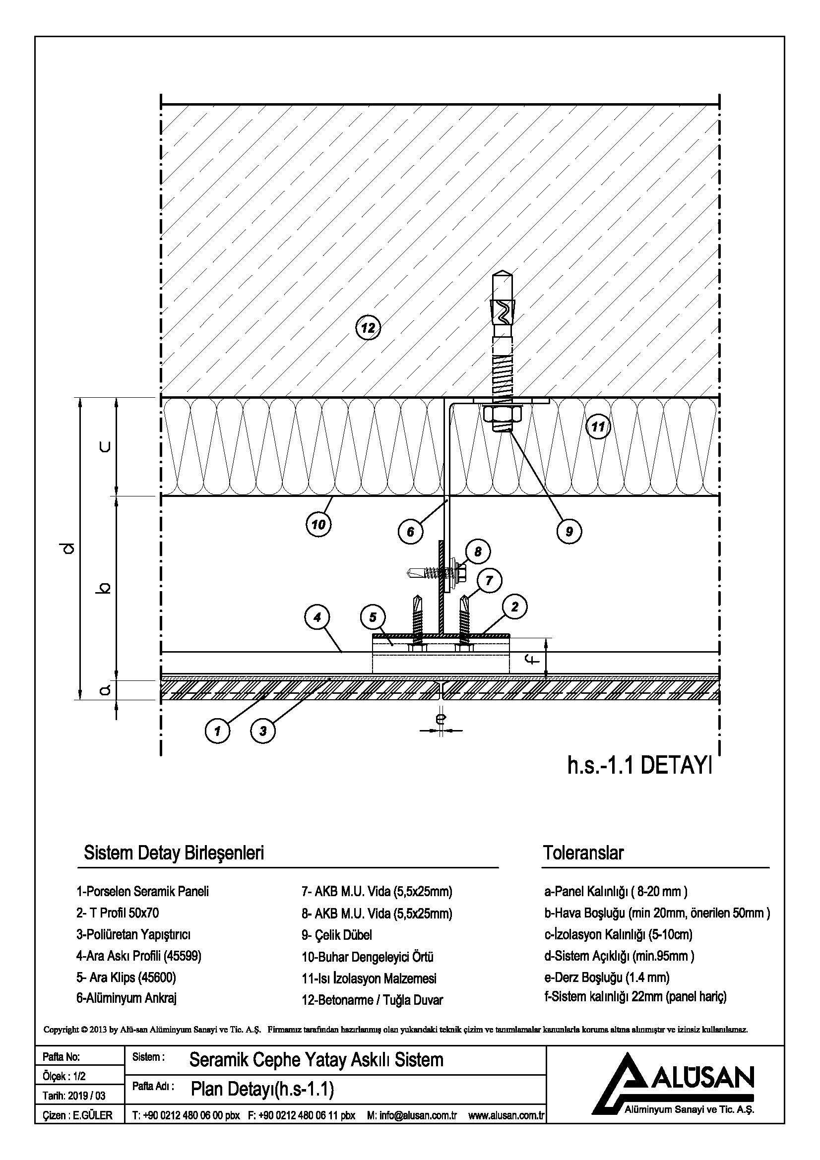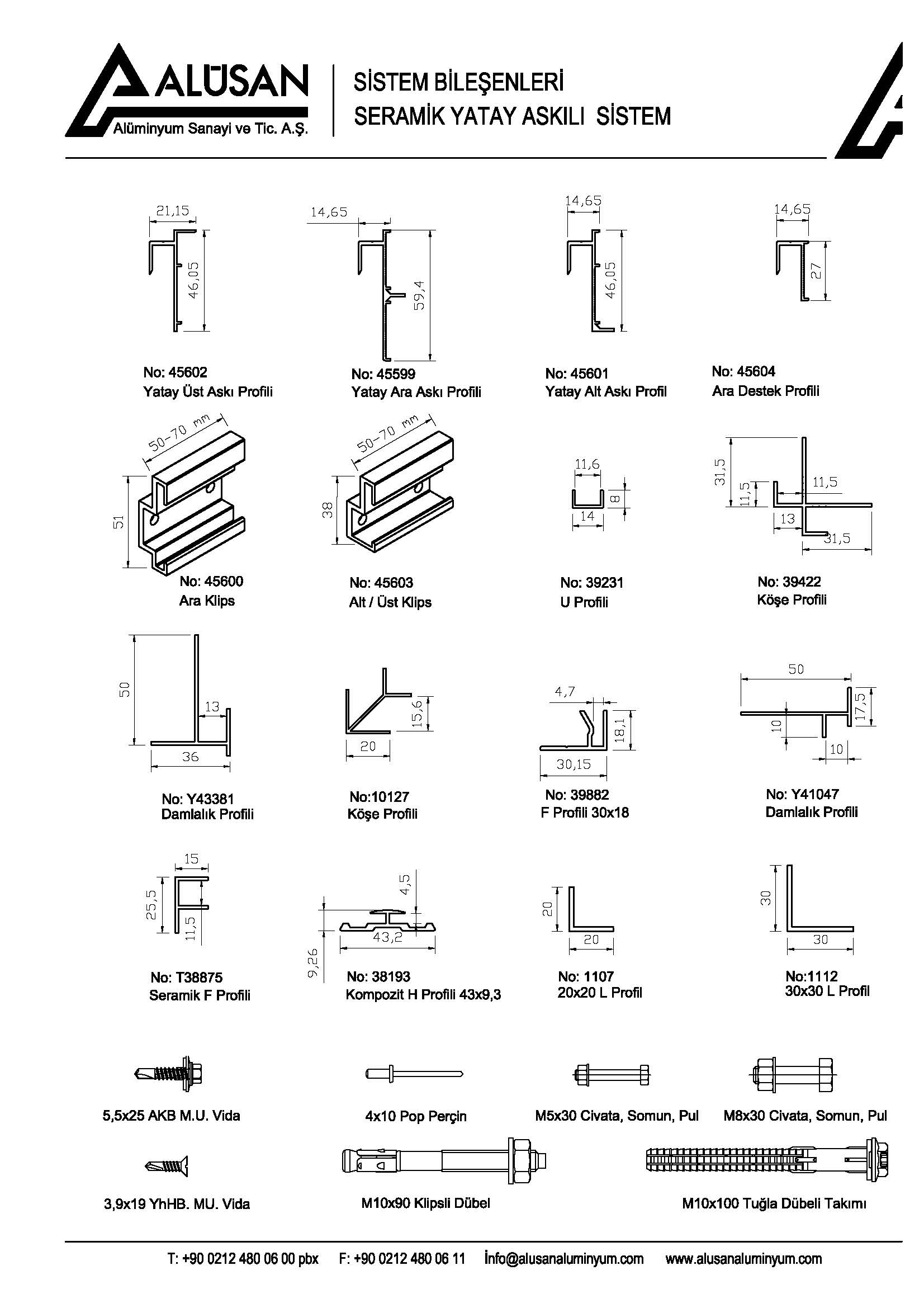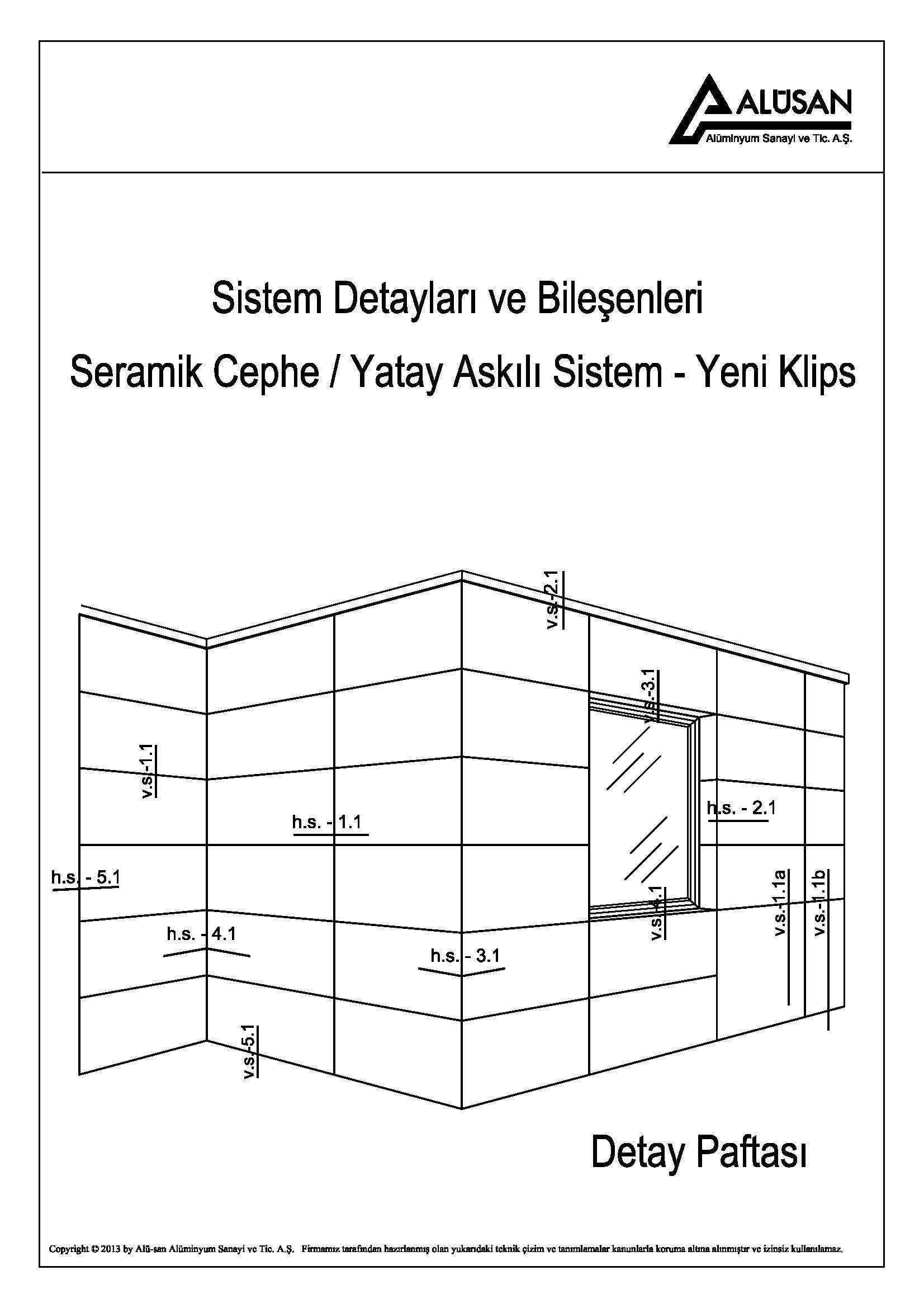 Yatay Askılı Sistemde alüminyum ankrajlar ve Düşey Taşıyıcı T Profillerden teşkil edilen alt konstrüksiyon üzerine alüminyum klipsler sabitlenir. Seramik Plakalar cepheye üst, ara ve alt yatay profiller kullanılarak bondinglenir. Ve Taşıyıcı klipslere asılarak kaplama işlemi bitirilmiş olur. Bu sistemin en büyük avantajı düşey derzler şaşırtmalı olabilir ve derz genişliği 2mm dir.